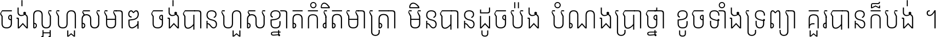 ចង់​ល្អ​ហួស​មាឌ ចង់​បាន​ហួស​ខ្នាត​កំរិត​មាត្រា មិន​បាន​ដូច​ប៉ង បំណង​ប្រាថ្នា ខូច​ទាំងទ្រព្យា គួរ​បាន​ក៏បង់ ។