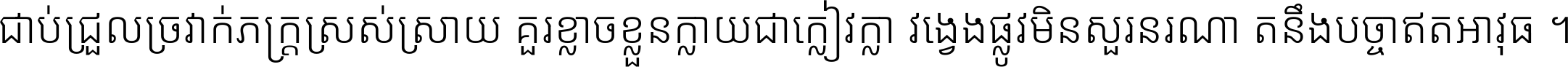 ចង​អ្វី​មិន​ជាប់​ស្មើ​សង្សារ ការ​អ្វី​មិន​ស្មើ​ការ​ប្រតិបត្តិ ស្ងាត់​អ្វី​មិន​ស្មើ​​ចិត្ត​អរហត្ត​ កាច​អ្វី​មិន​ស្មើ​ចិត្ត​ពាលា ។
