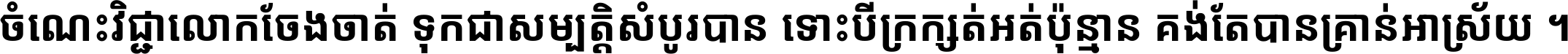 ចំណេះ​វិជ្ជា​លោក​ចែង​ចាត់ ទុក​ជា​សម្បត្តិ​សំបូរ​បាន ទោះ​បី​ក្រក្សត់​អត់​ប៉ុន្មាន គង់​តែ​បាន​គ្រាន់​អាស្រ័យ ។