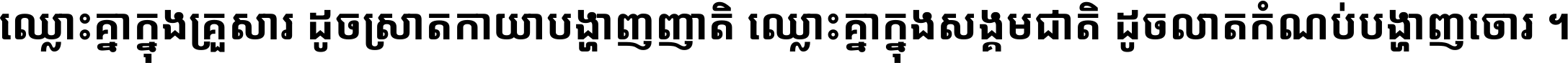 ឈ្លោះ​គ្នា​ក្នុង​គ្រួសារ ដូច​ស្រាត​កាយា​បង្ហាញ​ញាតិ ឈ្លោះគ្នាក្នុង​សង្គមជាតិ ដូច​លាត​កំណប់​បង្ហាញ​ចោរ ។