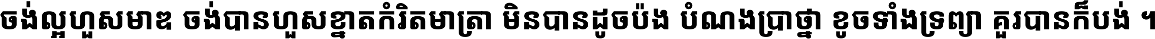ចង់​ល្អ​ហួស​មាឌ ចង់​បាន​ហួស​ខ្នាត​កំរិត​មាត្រា មិន​បាន​ដូច​ប៉ង បំណង​ប្រាថ្នា ខូច​ទាំងទ្រព្យា គួរ​បាន​ក៏បង់ ។