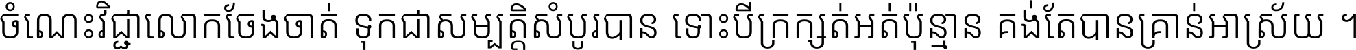 ចំណេះ​វិជ្ជា​លោក​ចែង​ចាត់ ទុក​ជា​សម្បត្តិ​សំបូរ​បាន ទោះ​បី​ក្រក្សត់​អត់​ប៉ុន្មាន គង់​តែ​បាន​គ្រាន់​អាស្រ័យ ។