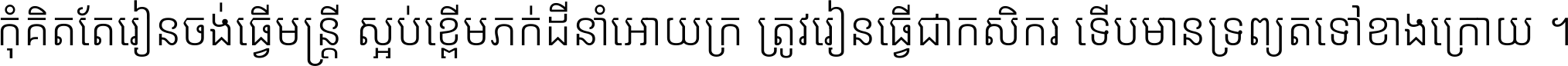 កុំ​គិត​តែ​រៀន​ចង់ធ្វើ​មន្ត្រី ស្អប់​ខ្ពើម​ភក់ដី​នាំអោយ​ក្រ ត្រូវ​រៀន​ធ្វើ​ជា​កសិករ ទើប​មានទ្រព្យ​ត​ទៅ​ខាង​ក្រោយ ។
