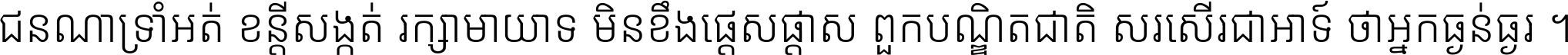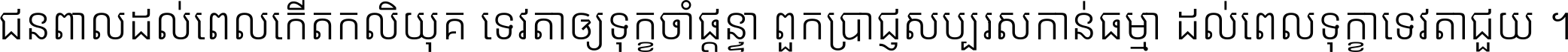 ជនពាល​ដល់​ពេល​កើត​កលិយុគ ទេវតា​ឲ្យ​ទុក្ខ​ចាំ​ផ្ដន្ទា ពួក​ប្រាជ្ញ​សប្បរស​កាន់​ធម្មា ដល់​ពេល​ទុក្ខា​ទេវតា​ជួយ ។