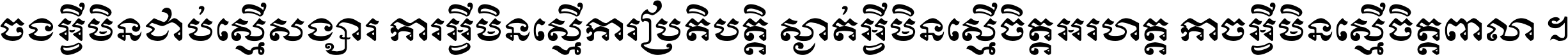 ចង​អ្វី​មិន​ជាប់​ស្មើ​សង្សារ ការ​អ្វី​មិន​ស្មើ​ការ​ប្រតិបត្តិ ស្ងាត់​អ្វី​មិន​ស្មើ​​ចិត្ត​អរហត្ត​ កាច​អ្វី​មិន​ស្មើ​ចិត្ត​ពាលា ។