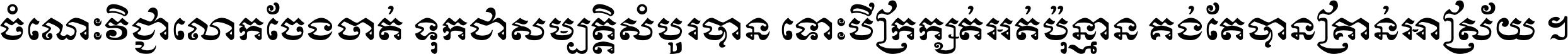 ចំណេះ​វិជ្ជា​លោក​ចែង​ចាត់ ទុក​ជា​សម្បត្តិ​សំបូរ​បាន ទោះ​បី​ក្រក្សត់​អត់​ប៉ុន្មាន គង់​តែ​បាន​គ្រាន់​អាស្រ័យ ។