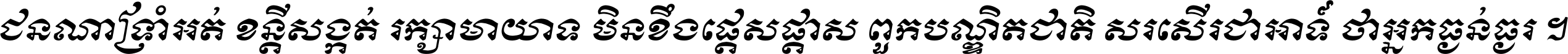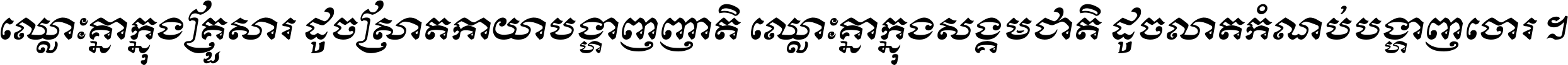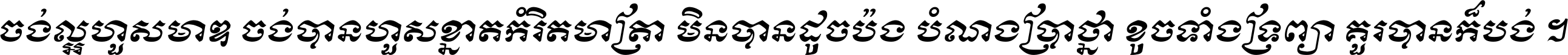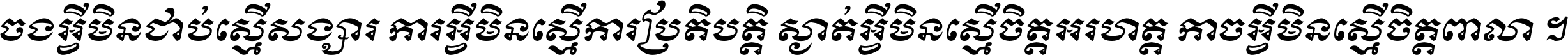 ចង​អ្វី​មិន​ជាប់​ស្មើ​សង្សារ ការ​អ្វី​មិន​ស្មើ​ការ​ប្រតិបត្តិ ស្ងាត់​អ្វី​មិន​ស្មើ​​ចិត្ត​អរហត្ត​ កាច​អ្វី​មិន​ស្មើ​ចិត្ត​ពាលា ។