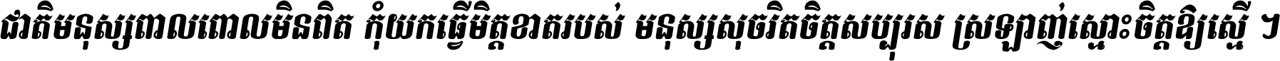 ជាតិ​មនុស្ស​ពាល​ពោល​មិន​ពិត កុំ​យក​ធ្វើ​មិត្ត​ខាត​របស់ មនុស្ស​សុចរិត​ចិត្ត​សប្បុរស ស្រឡាញ់​ស្មោះ​ចិត្ត​ឲ្យ​ស្មើ ។