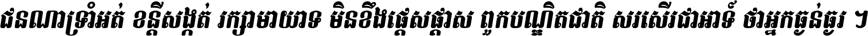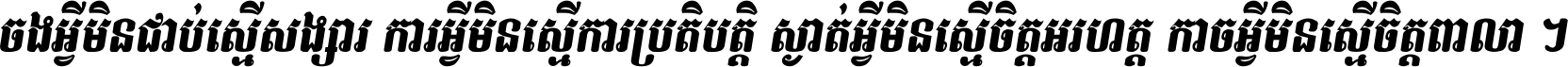 ចង​អ្វី​មិន​ជាប់​ស្មើ​សង្សារ ការ​អ្វី​មិន​ស្មើ​ការ​ប្រតិបត្តិ ស្ងាត់​អ្វី​មិន​ស្មើ​​ចិត្ត​អរហត្ត​ កាច​អ្វី​មិន​ស្មើ​ចិត្ត​ពាលា ។