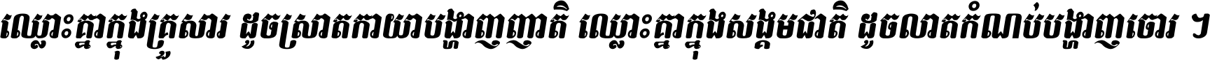 ឈ្លោះ​គ្នា​ក្នុង​គ្រួសារ ដូច​ស្រាត​កាយា​បង្ហាញ​ញាតិ ឈ្លោះគ្នាក្នុង​សង្គមជាតិ ដូច​លាត​កំណប់​បង្ហាញ​ចោរ ។