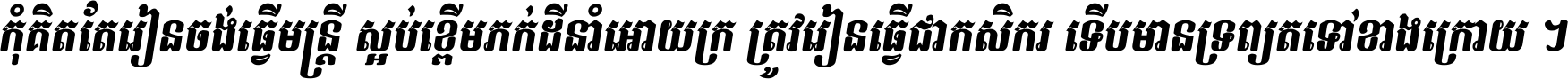 កុំ​គិត​តែ​រៀន​ចង់ធ្វើ​មន្ត្រី ស្អប់​ខ្ពើម​ភក់ដី​នាំអោយ​ក្រ ត្រូវ​រៀន​ធ្វើ​ជា​កសិករ ទើប​មានទ្រព្យ​ត​ទៅ​ខាង​ក្រោយ ។