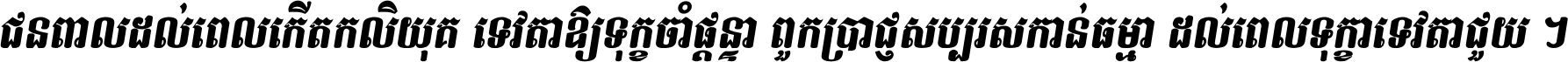 ជនពាល​ដល់​ពេល​កើត​កលិយុគ ទេវតា​ឲ្យ​ទុក្ខ​ចាំ​ផ្ដន្ទា ពួក​ប្រាជ្ញ​សប្បរស​កាន់​ធម្មា ដល់​ពេល​ទុក្ខា​ទេវតា​ជួយ ។
