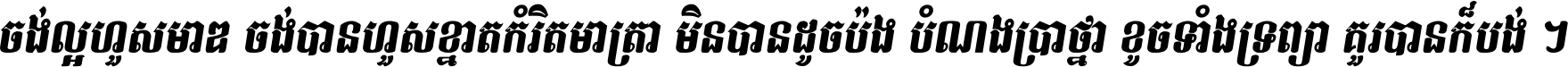 ចង់​ល្អ​ហួស​មាឌ ចង់​បាន​ហួស​ខ្នាត​កំរិត​មាត្រា មិន​បាន​ដូច​ប៉ង បំណង​ប្រាថ្នា ខូច​ទាំងទ្រព្យា គួរ​បាន​ក៏បង់ ។