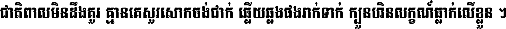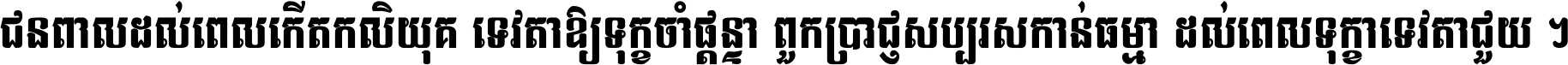 ជនពាល​ដល់​ពេល​កើត​កលិយុគ ទេវតា​ឲ្យ​ទុក្ខ​ចាំ​ផ្ដន្ទា ពួក​ប្រាជ្ញ​សប្បរស​កាន់​ធម្មា ដល់​ពេល​ទុក្ខា​ទេវតា​ជួយ ។