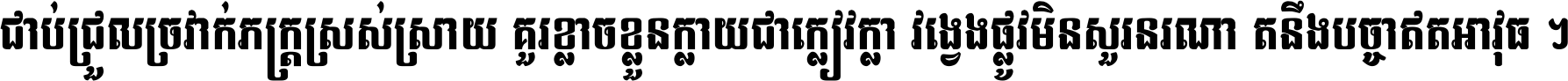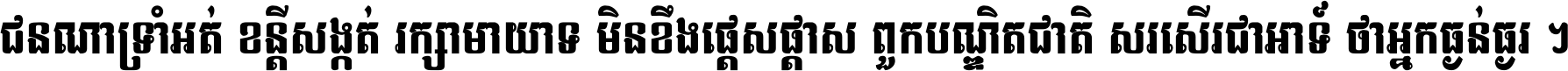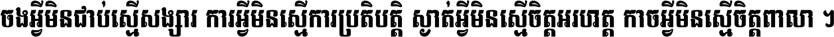 ចង​អ្វី​មិន​ជាប់​ស្មើ​សង្សារ ការ​អ្វី​មិន​ស្មើ​ការ​ប្រតិបត្តិ ស្ងាត់​អ្វី​មិន​ស្មើ​​ចិត្ត​អរហត្ត​ កាច​អ្វី​មិន​ស្មើ​ចិត្ត​ពាលា ។