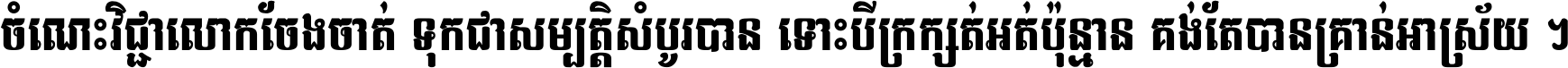 ចំណេះ​វិជ្ជា​លោក​ចែង​ចាត់ ទុក​ជា​សម្បត្តិ​សំបូរ​បាន ទោះ​បី​ក្រក្សត់​អត់​ប៉ុន្មាន គង់​តែ​បាន​គ្រាន់​អាស្រ័យ ។