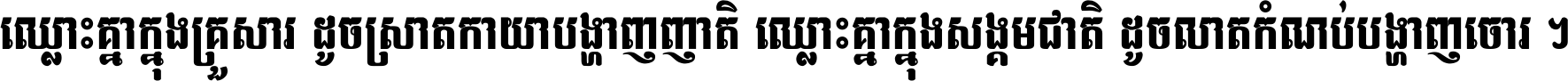 ឈ្លោះ​គ្នា​ក្នុង​គ្រួសារ ដូច​ស្រាត​កាយា​បង្ហាញ​ញាតិ ឈ្លោះគ្នាក្នុង​សង្គមជាតិ ដូច​លាត​កំណប់​បង្ហាញ​ចោរ ។