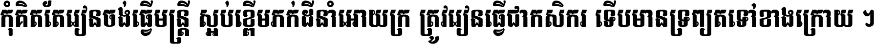 កុំ​គិត​តែ​រៀន​ចង់ធ្វើ​មន្ត្រី ស្អប់​ខ្ពើម​ភក់ដី​នាំអោយ​ក្រ ត្រូវ​រៀន​ធ្វើ​ជា​កសិករ ទើប​មានទ្រព្យ​ត​ទៅ​ខាង​ក្រោយ ។