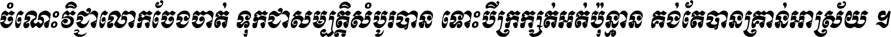 ចំណេះ​វិជ្ជា​លោក​ចែង​ចាត់ ទុក​ជា​សម្បត្តិ​សំបូរ​បាន ទោះ​បី​ក្រក្សត់​អត់​ប៉ុន្មាន គង់​តែ​បាន​គ្រាន់​អាស្រ័យ ។