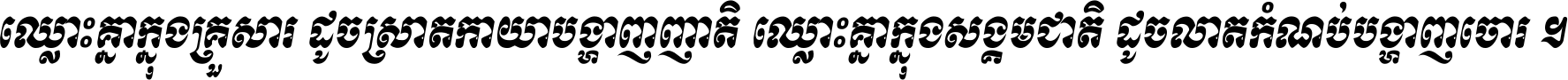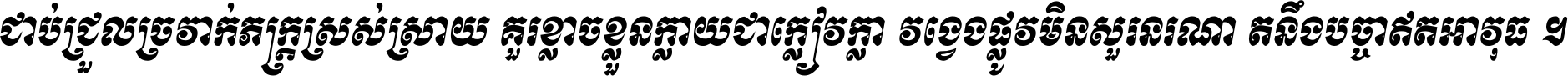 ចង​អ្វី​មិន​ជាប់​ស្មើ​សង្សារ ការ​អ្វី​មិន​ស្មើ​ការ​ប្រតិបត្តិ ស្ងាត់​អ្វី​មិន​ស្មើ​​ចិត្ត​អរហត្ត​ កាច​អ្វី​មិន​ស្មើ​ចិត្ត​ពាលា ។