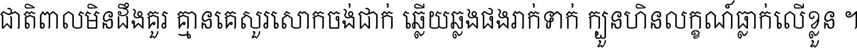 ជាតិ​ពាល​មិន​ដឹង​គួរ គ្មាន​គេ​សួរ​សោក​ចង់​ជាក់ ឆ្លើយ​ឆ្លង​ផង​រាក់​ទាក់​ ក្បួន​ហិន​លក្ខណ៍​ធ្លាក់​លើ​ខ្លួន ។