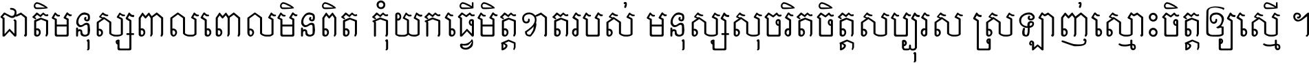 ជាតិ​មនុស្ស​ពាល​ពោល​មិន​ពិត កុំ​យក​ធ្វើ​មិត្ត​ខាត​របស់ មនុស្ស​សុចរិត​ចិត្ត​សប្បុរស ស្រឡាញ់​ស្មោះ​ចិត្ត​ឲ្យ​ស្មើ ។