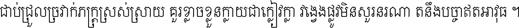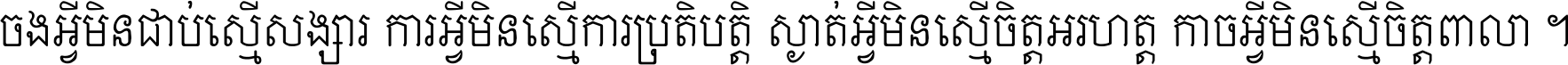ចង​អ្វី​មិន​ជាប់​ស្មើ​សង្សារ ការ​អ្វី​មិន​ស្មើ​ការ​ប្រតិបត្តិ ស្ងាត់​អ្វី​មិន​ស្មើ​​ចិត្ត​អរហត្ត​ កាច​អ្វី​មិន​ស្មើ​ចិត្ត​ពាលា ។