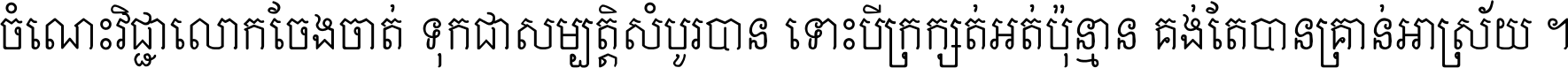 ចំណេះ​វិជ្ជា​លោក​ចែង​ចាត់ ទុក​ជា​សម្បត្តិ​សំបូរ​បាន ទោះ​បី​ក្រក្សត់​អត់​ប៉ុន្មាន គង់​តែ​បាន​គ្រាន់​អាស្រ័យ ។