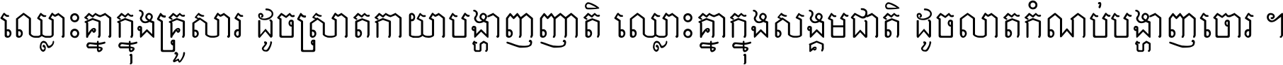 ឈ្លោះ​គ្នា​ក្នុង​គ្រួសារ ដូច​ស្រាត​កាយា​បង្ហាញ​ញាតិ ឈ្លោះគ្នាក្នុង​សង្គមជាតិ ដូច​លាត​កំណប់​បង្ហាញ​ចោរ ។