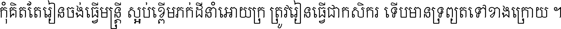 កុំ​គិត​តែ​រៀន​ចង់ធ្វើ​មន្ត្រី ស្អប់​ខ្ពើម​ភក់ដី​នាំអោយ​ក្រ ត្រូវ​រៀន​ធ្វើ​ជា​កសិករ ទើប​មានទ្រព្យ​ត​ទៅ​ខាង​ក្រោយ ។
