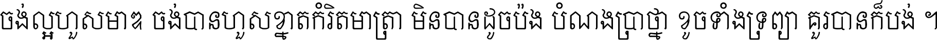 ចង់​ល្អ​ហួស​មាឌ ចង់​បាន​ហួស​ខ្នាត​កំរិត​មាត្រា មិន​បាន​ដូច​ប៉ង បំណង​ប្រាថ្នា ខូច​ទាំងទ្រព្យា គួរ​បាន​ក៏បង់ ។