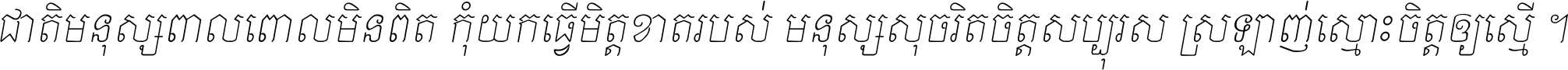 ជាតិ​មនុស្ស​ពាល​ពោល​មិន​ពិត កុំ​យក​ធ្វើ​មិត្ត​ខាត​របស់ មនុស្ស​សុចរិត​ចិត្ត​សប្បុរស ស្រឡាញ់​ស្មោះ​ចិត្ត​ឲ្យ​ស្មើ ។