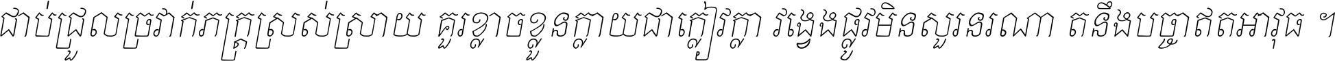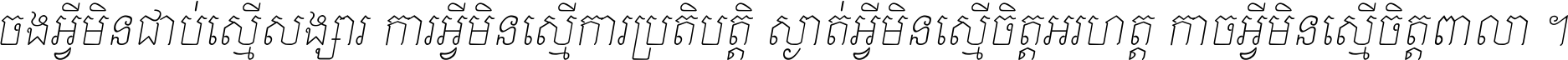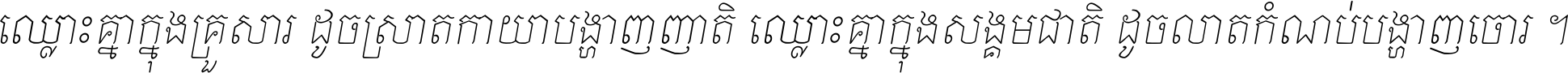 ចង​អ្វី​មិន​ជាប់​ស្មើ​សង្សារ ការ​អ្វី​មិន​ស្មើ​ការ​ប្រតិបត្តិ ស្ងាត់​អ្វី​មិន​ស្មើ​​ចិត្ត​អរហត្ត​ កាច​អ្វី​មិន​ស្មើ​ចិត្ត​ពាលា ។