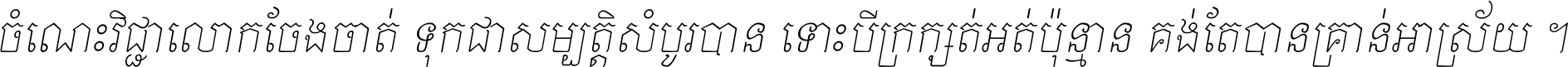 ចំណេះ​វិជ្ជា​លោក​ចែង​ចាត់ ទុក​ជា​សម្បត្តិ​សំបូរ​បាន ទោះ​បី​ក្រក្សត់​អត់​ប៉ុន្មាន គង់​តែ​បាន​គ្រាន់​អាស្រ័យ ។