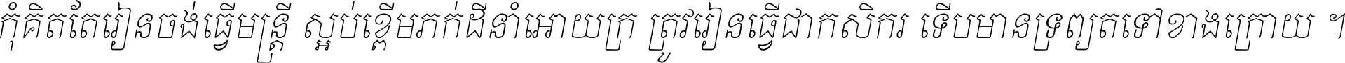កុំ​គិត​តែ​រៀន​ចង់ធ្វើ​មន្ត្រី ស្អប់​ខ្ពើម​ភក់ដី​នាំអោយ​ក្រ ត្រូវ​រៀន​ធ្វើ​ជា​កសិករ ទើប​មានទ្រព្យ​ត​ទៅ​ខាង​ក្រោយ ។