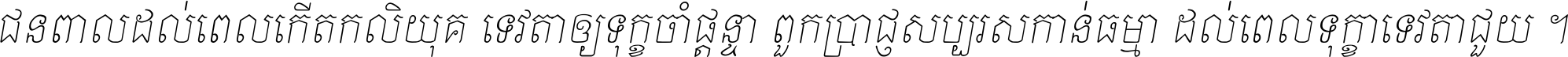 ជនពាល​ដល់​ពេល​កើត​កលិយុគ ទេវតា​ឲ្យ​ទុក្ខ​ចាំ​ផ្ដន្ទា ពួក​ប្រាជ្ញ​សប្បរស​កាន់​ធម្មា ដល់​ពេល​ទុក្ខា​ទេវតា​ជួយ ។