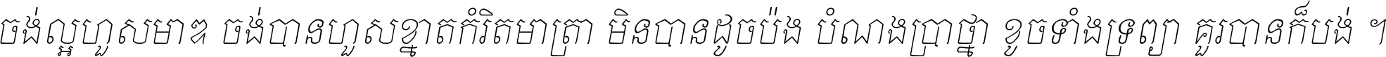 ចង់​ល្អ​ហួស​មាឌ ចង់​បាន​ហួស​ខ្នាត​កំរិត​មាត្រា មិន​បាន​ដូច​ប៉ង បំណង​ប្រាថ្នា ខូច​ទាំងទ្រព្យា គួរ​បាន​ក៏បង់ ។