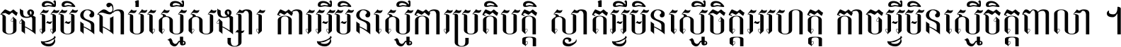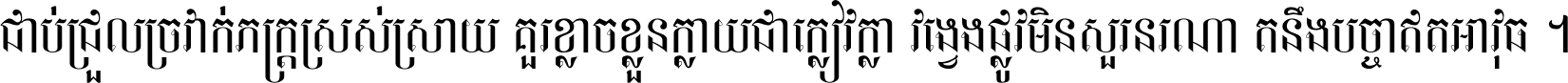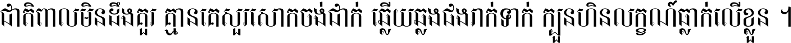 ចង​អ្វី​មិន​ជាប់​ស្មើ​សង្សារ ការ​អ្វី​មិន​ស្មើ​ការ​ប្រតិបត្តិ ស្ងាត់​អ្វី​មិន​ស្មើ​​ចិត្ត​អរហត្ត​ កាច​អ្វី​មិន​ស្មើ​ចិត្ត​ពាលា ។