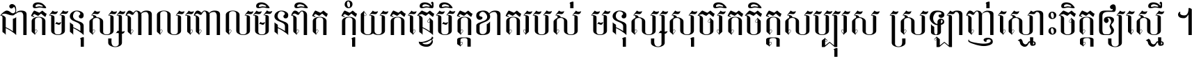 ជាតិ​មនុស្ស​ពាល​ពោល​មិន​ពិត កុំ​យក​ធ្វើ​មិត្ត​ខាត​របស់ មនុស្ស​សុចរិត​ចិត្ត​សប្បុរស ស្រឡាញ់​ស្មោះ​ចិត្ត​ឲ្យ​ស្មើ ។