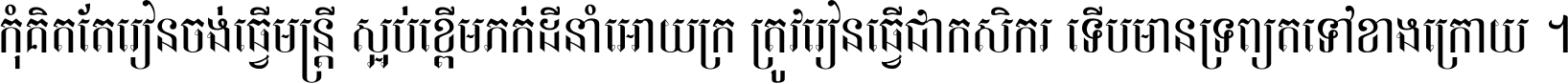 កុំ​គិត​តែ​រៀន​ចង់ធ្វើ​មន្ត្រី ស្អប់​ខ្ពើម​ភក់ដី​នាំអោយ​ក្រ ត្រូវ​រៀន​ធ្វើ​ជា​កសិករ ទើប​មានទ្រព្យ​ត​ទៅ​ខាង​ក្រោយ ។