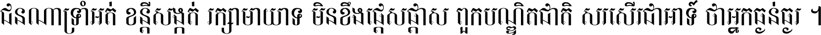 ជនណា​ទ្រាំអត់ ខន្តី​សង្កត់ រក្សា​មាយាទ មិន​ខឹង​ផ្ដេសផ្ដាស ពួក​បណ្ឌិតជាតិ សរសើរ​ជា​អាទ៍ ថា​អ្នក​ធ្ងន់​ធ្ងរ ។