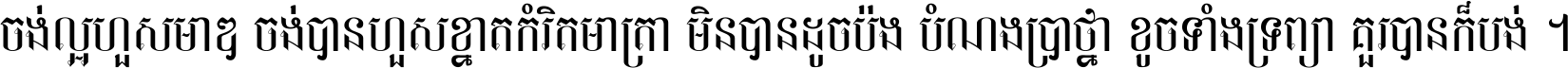 ចង់​ល្អ​ហួស​មាឌ ចង់​បាន​ហួស​ខ្នាត​កំរិត​មាត្រា មិន​បាន​ដូច​ប៉ង បំណង​ប្រាថ្នា ខូច​ទាំងទ្រព្យា គួរ​បាន​ក៏បង់ ។