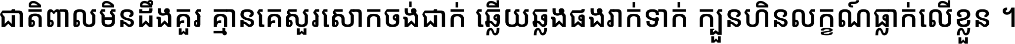 ជាតិ​ពាល​មិន​ដឹង​គួរ គ្មាន​គេ​សួរ​សោក​ចង់​ជាក់ ឆ្លើយ​ឆ្លង​ផង​រាក់​ទាក់​ ក្បួន​ហិន​លក្ខណ៍​ធ្លាក់​លើ​ខ្លួន ។