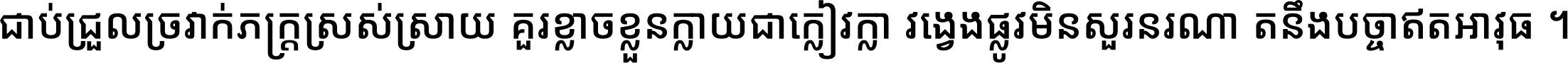 ចង​អ្វី​មិន​ជាប់​ស្មើ​សង្សារ ការ​អ្វី​មិន​ស្មើ​ការ​ប្រតិបត្តិ ស្ងាត់​អ្វី​មិន​ស្មើ​​ចិត្ត​អរហត្ត​ កាច​អ្វី​មិន​ស្មើ​ចិត្ត​ពាលា ។
