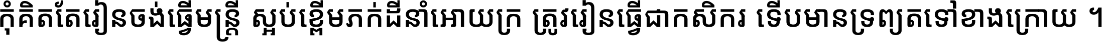 កុំ​គិត​តែ​រៀន​ចង់ធ្វើ​មន្ត្រី ស្អប់​ខ្ពើម​ភក់ដី​នាំអោយ​ក្រ ត្រូវ​រៀន​ធ្វើ​ជា​កសិករ ទើប​មានទ្រព្យ​ត​ទៅ​ខាង​ក្រោយ ។