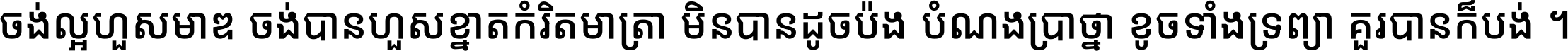 ចង់​ល្អ​ហួស​មាឌ ចង់​បាន​ហួស​ខ្នាត​កំរិត​មាត្រា មិន​បាន​ដូច​ប៉ង បំណង​ប្រាថ្នា ខូច​ទាំងទ្រព្យា គួរ​បាន​ក៏បង់ ។