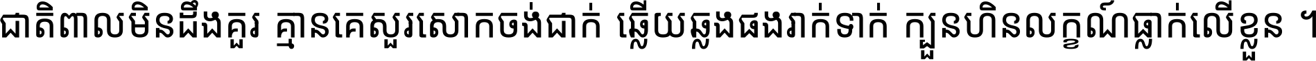 ជាតិ​ពាល​មិន​ដឹង​គួរ គ្មាន​គេ​សួរ​សោក​ចង់​ជាក់ ឆ្លើយ​ឆ្លង​ផង​រាក់​ទាក់​ ក្បួន​ហិន​លក្ខណ៍​ធ្លាក់​លើ​ខ្លួន ។