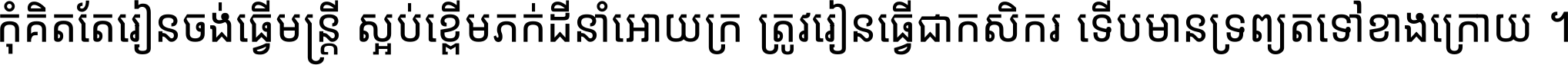កុំ​គិត​តែ​រៀន​ចង់ធ្វើ​មន្ត្រី ស្អប់​ខ្ពើម​ភក់ដី​នាំអោយ​ក្រ ត្រូវ​រៀន​ធ្វើ​ជា​កសិករ ទើប​មានទ្រព្យ​ត​ទៅ​ខាង​ក្រោយ ។