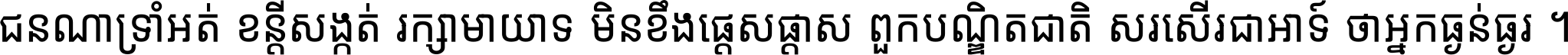 ជនណា​ទ្រាំអត់ ខន្តី​សង្កត់ រក្សា​មាយាទ មិន​ខឹង​ផ្ដេសផ្ដាស ពួក​បណ្ឌិតជាតិ សរសើរ​ជា​អាទ៍ ថា​អ្នក​ធ្ងន់​ធ្ងរ ។