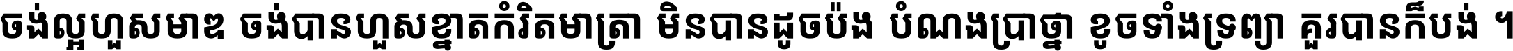 ចង់​ល្អ​ហួស​មាឌ ចង់​បាន​ហួស​ខ្នាត​កំរិត​មាត្រា មិន​បាន​ដូច​ប៉ង បំណង​ប្រាថ្នា ខូច​ទាំងទ្រព្យា គួរ​បាន​ក៏បង់ ។
